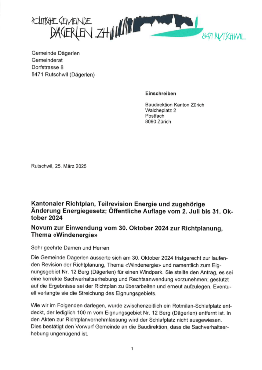 Novum zur Einwendung vom 30. Oktober 2024 zur Richtplanung, Thema